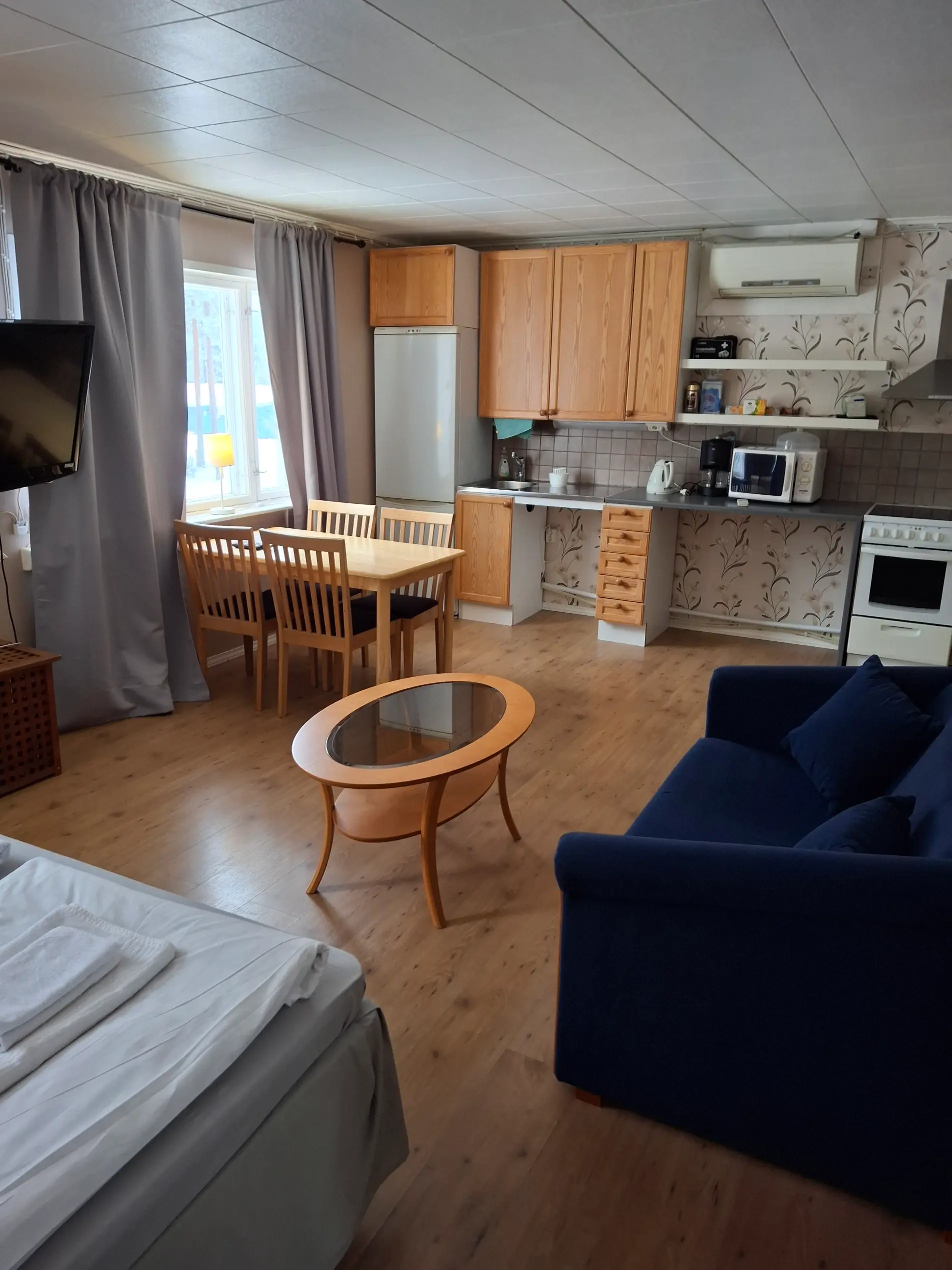 Pidemmässä majoituksessa käytössä on myös pesuhuoneen pyykinpesukone ja kuivausrumpu. Vuoteet ovat valmiiksi sijattuja ja hintaan sisältyy kylpy- ja kasvopyyhe.